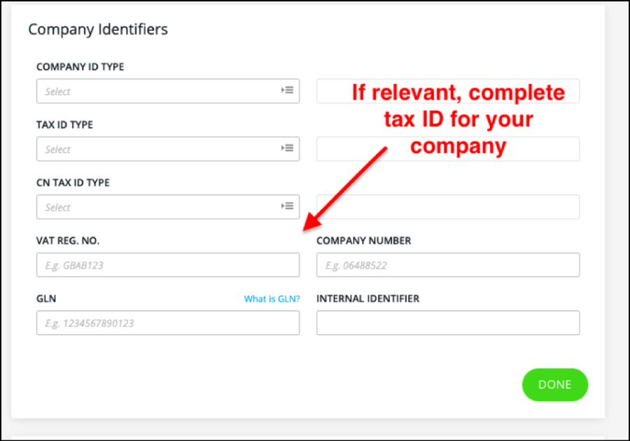 IMPORTANT NOTE: IN A TAXABLE COUNTRY, YOU NEED TO INCLUDE A TAX ID, HOWEVER, THIS IS NOT REQUIRED FOR NON-TAXABLE COUNTRIES.