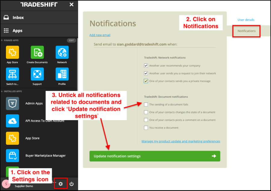 You can disable email notifications which you would otherwise receive whenever a document is forwarded or status changes.